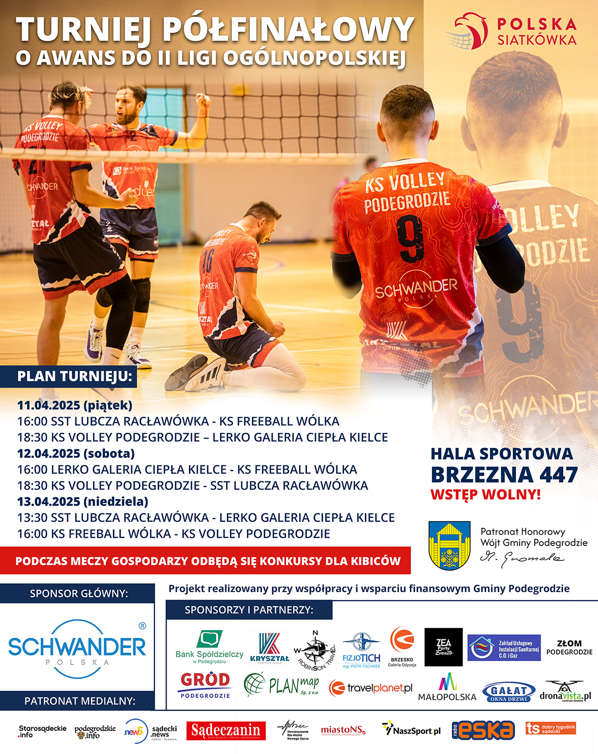 🏐 W tej historycznej dla nas chwili, ❗️❗️BĄDŻCIE RAZEM Z NAMI ❗️❗️. Kibicujcie naszym siatkarzom prosto z trybun hali w Brzeznej. Liczymy na Waszą obecność podczas tych trzech dni turniejowych. Jeszcze nigdy wcześniej, nie było tak prestiżowego turnieju w Gminie Podegrodzie, dlatego tym bardziej potrzebujemy wsparcia kibiców. WIDZIMY SIĘ W BRZEZNEJ 💪🤝